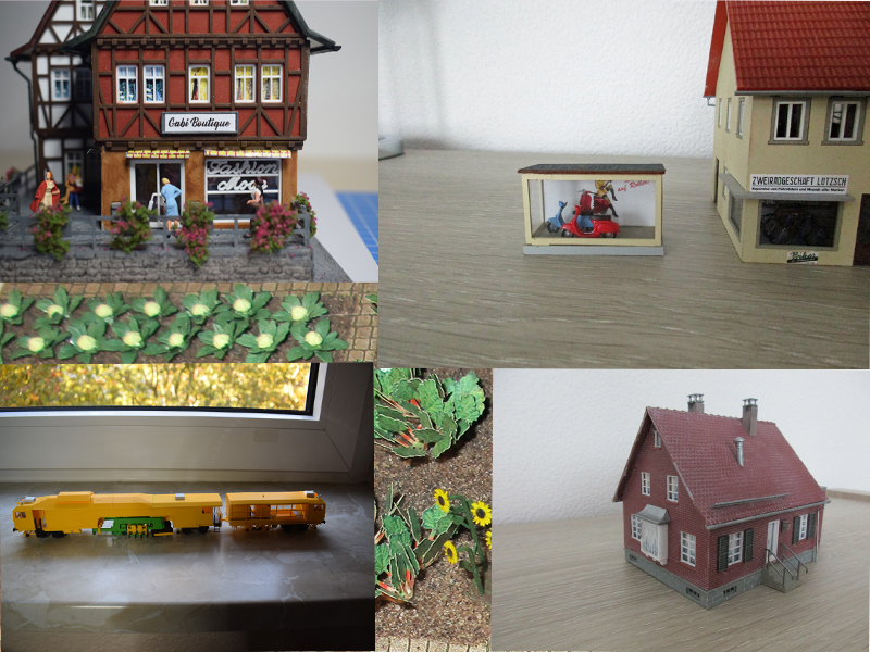 Dieses schöne Fachwerkgebäude mit Arkadengang und Ladengeschäft (Busch 1539) passte sehr gut in meine Altstadt. Auch hier gab es einen stabilen und zusammensteckbaren Unterbau. An der Seite befindet sich ein Nachtclub der sich durch die verdeckten Glasfenster mit den „eindeutigen“ Motiven authentisch von innen beleuchten lässt. Zur rechten Seite werden im Tuningcenter Sportreifen, Felgen und Auspuffe sowie Zubehör angeboten. In dem Bausatz sind auch eine passende Inneneirichtung und Ausgestaltungszubehör. Auch für eine alternative Einrichtung liegen Ausschneidebögen bei.
