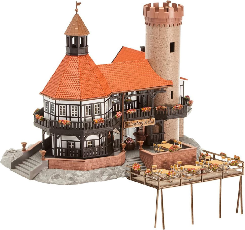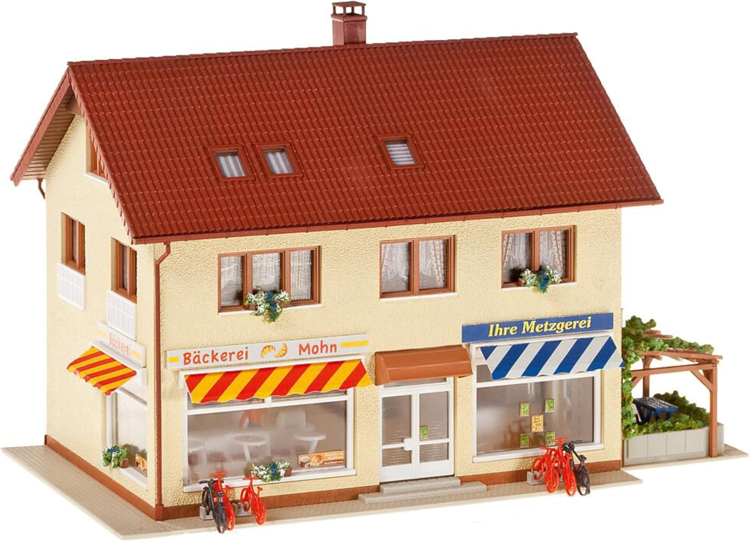 Von Faller gab es mal ein modernes Architektenhaus (130322 von Faller nicht mehr lieferbar) mit unterschiedlichen Farben und Baukörpern. Es hat eine weitläufige Terrasse mit gegenläufigen Pultdächern.