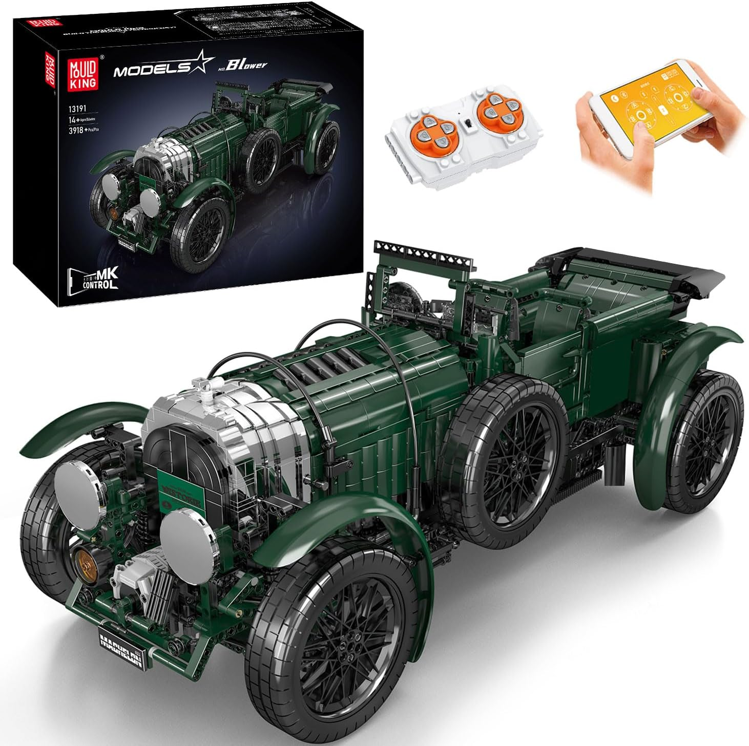 Mould King 13191 Technik Oldtimer Auto Bausteine Modell mit Motor, 3918 Teile Ferngesteuert Oldtimer Bausatz mit Fernbedienung und App Dual Control