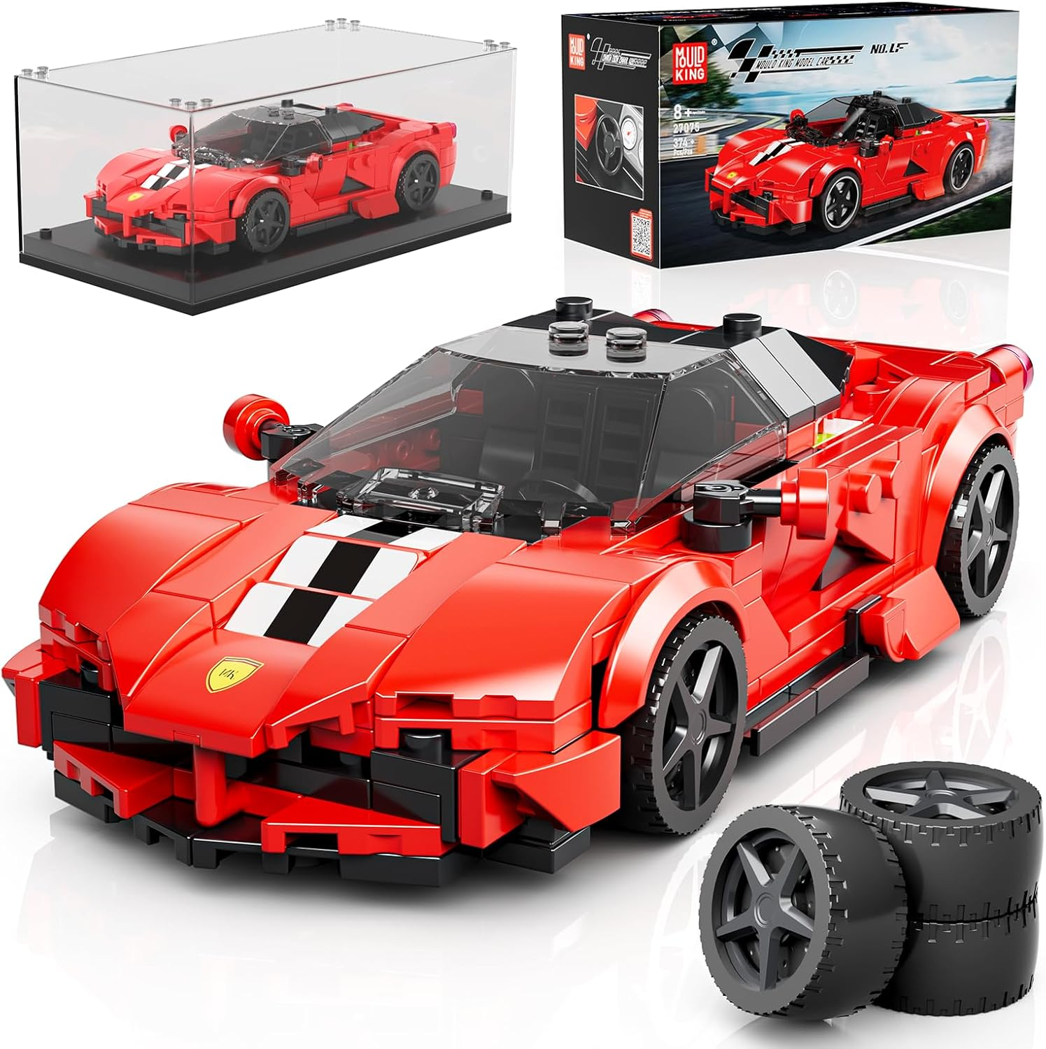 Mould King 27087 Technik Speed Champion Klemmbausteine Auto Supersportwagen Bausteine Set Rennwagen F296 GT3 mit Acryl Vitrine Anzeige: Bei Amazon ansehen