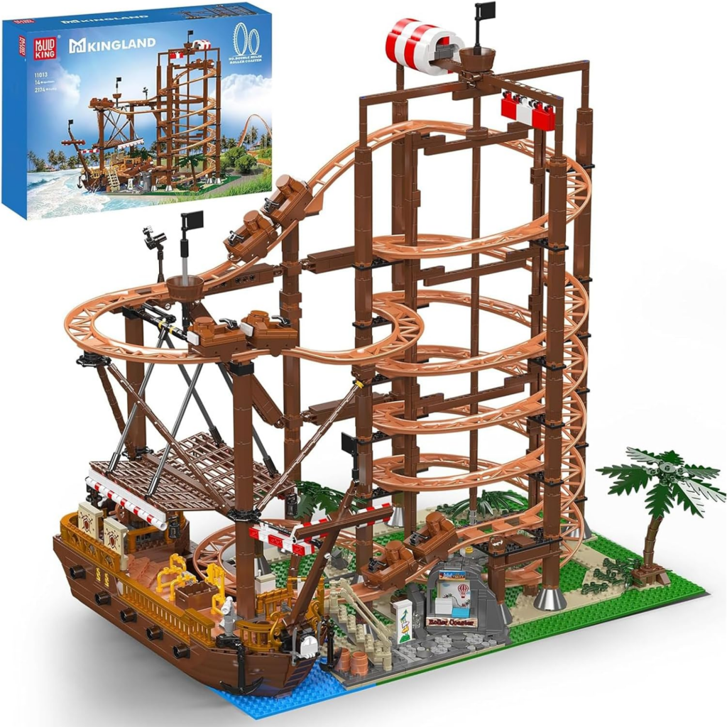 Mould King 11013 Technik Achterbahn Set, 2174 Teile Piratenschiff Doppelschrauben-Achterbahn für Erwachsene, MOC Vergnügungspark Loop Coaster…