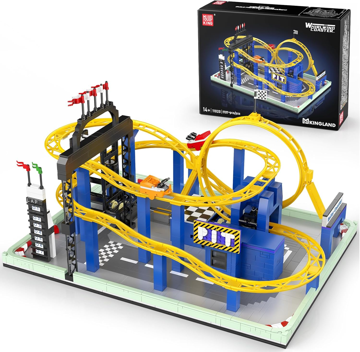 Mould King 11020 Achterbahn-Bausatz, motorisierter Looping Coaster mit 360°-Loopings, Zielbogen und Rundenzähler, von Themenparks inspiriertes…