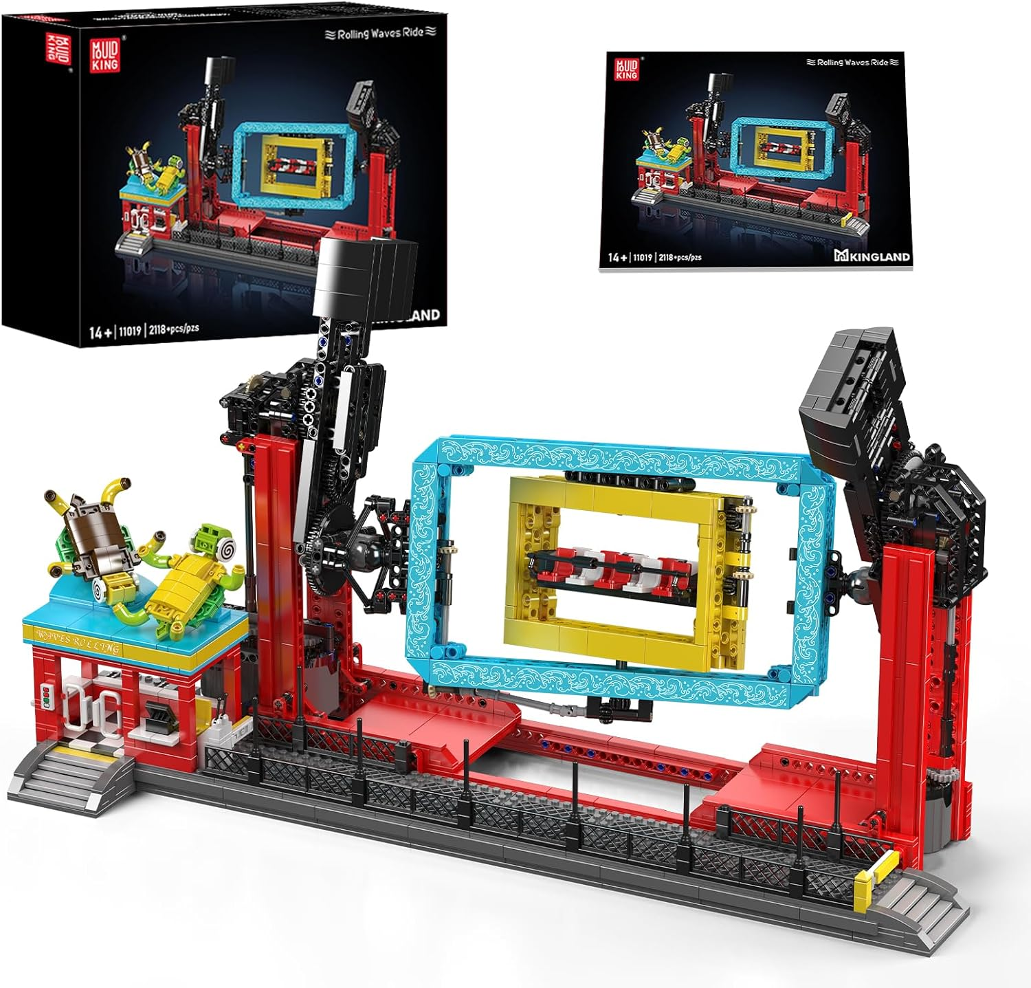 Mould King 11027 Technik Schwinguhr Baustein, 2192 Teile Kreative Pendeluhr Set, MOC Schaukeluhr im Vergnügungspark Modellbausteine Klemmbausteine Bauset