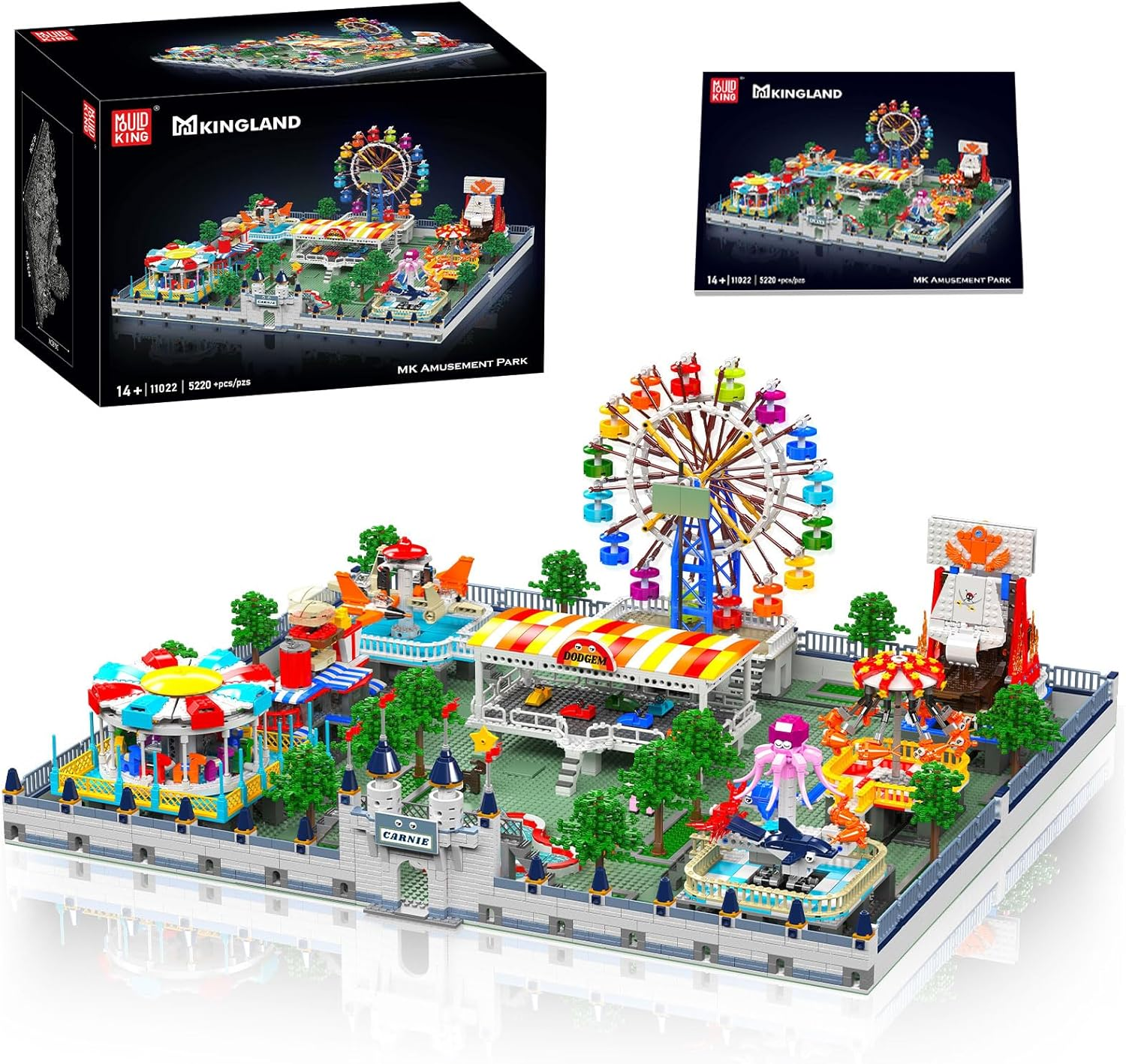 Mould King 11022 Technik Groß Vergnügungspark Bausatz, MOC Themenpark Achterbahn und Riesenrad Kit STEM Spielzeug Klemmbausteine Bausatz Modell (5220 Teile)