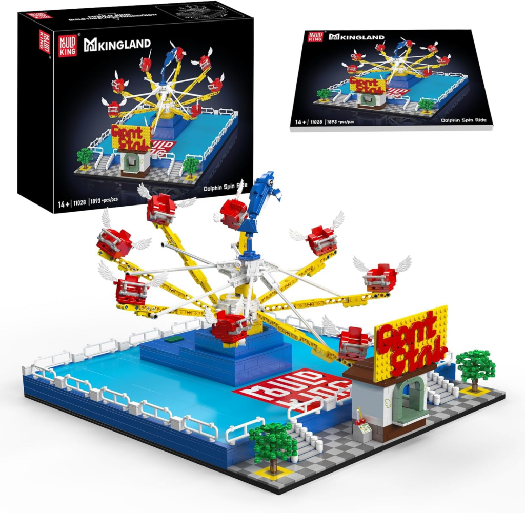 Mould King 11028 Technik Große Karussell Set, MOC 1893 Teile Kreative Delfinkarussell Modellbausteine, Vergnügungspark Bausteinmodell