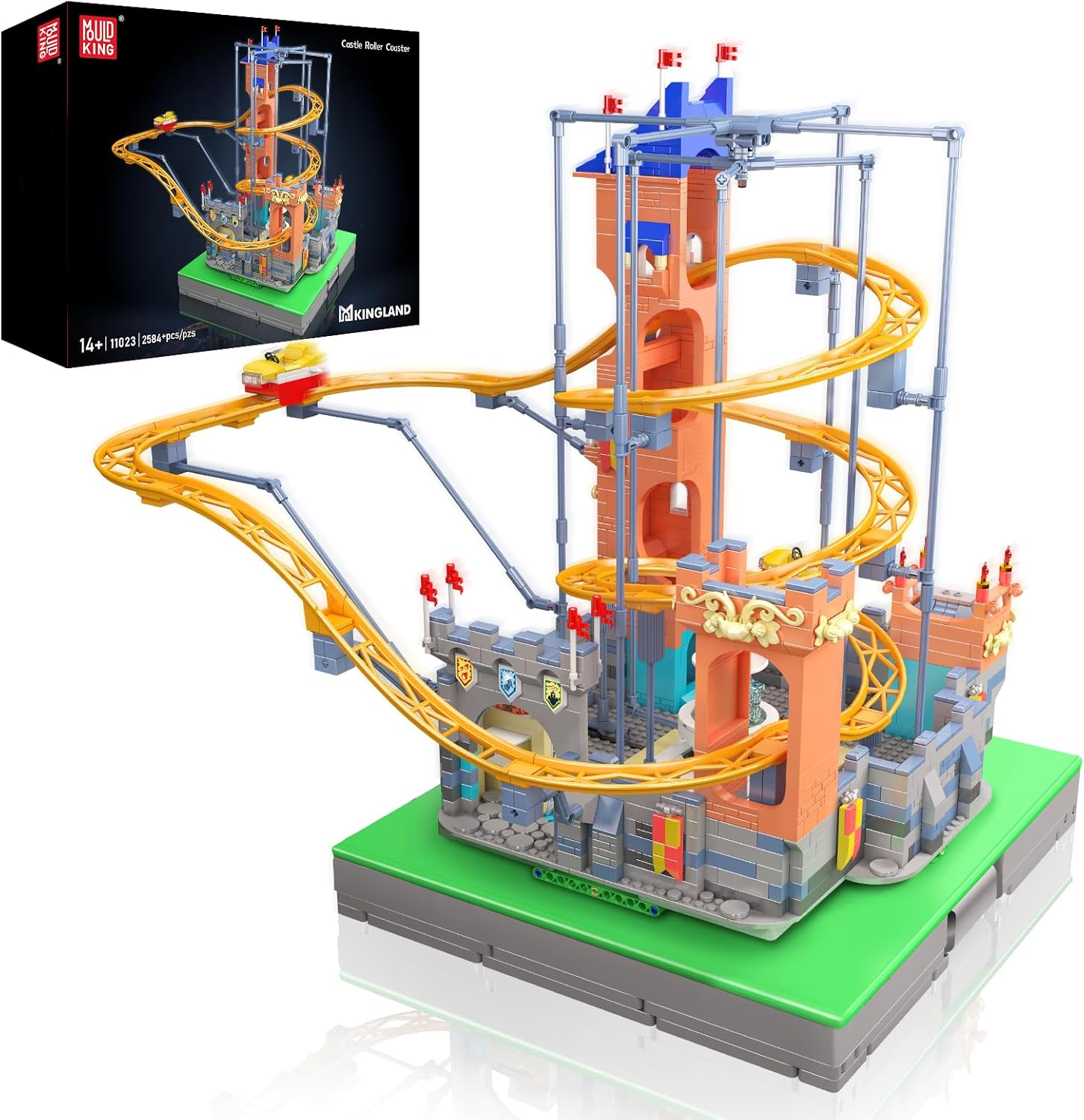 Mould King Achterbahn Bauset, 2584+ Teile Schloss-Thema Freizeitpark Modellbausatz mit Motoren, STEM Konstruktion Spielzeug für Rollercoaster