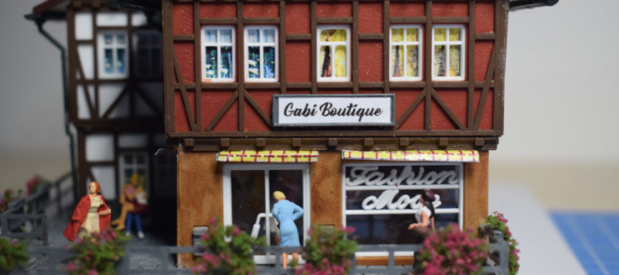 Als Modelleisenbahner ist man immer auf der Suche nach schönen Modellen. Mit dieser Mode-Boutique von Vollmer (43694 H0) kann man