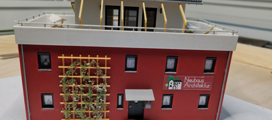 Von Faller gab es mal ein modernes Architektenhaus (130322 von Faller nicht mehr lieferbar) mit unterschiedlichen Farben und Baukörpern. Es