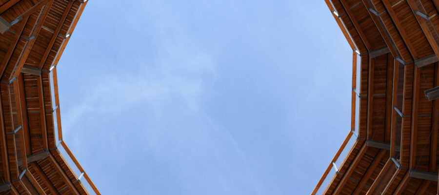 Baumwipfelpfad Salzkammergut (Grünberg bei Gmunden, Österreich) Der Baumwipfelpfad liegt auf dem 984 Meter hohen Gipfel des Grünbergs über dem Traunsee.
