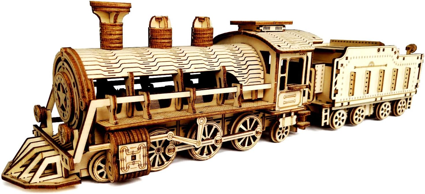 Zug-3D-Puzzle-Modell-Bausatz, Holz-Dampfzug mechanische Puzzle-Modell Spielzeug, Selbstmontage, mechanische Struktur Handwerk (Züge) Anzeige: Bei Amazon ansehen
