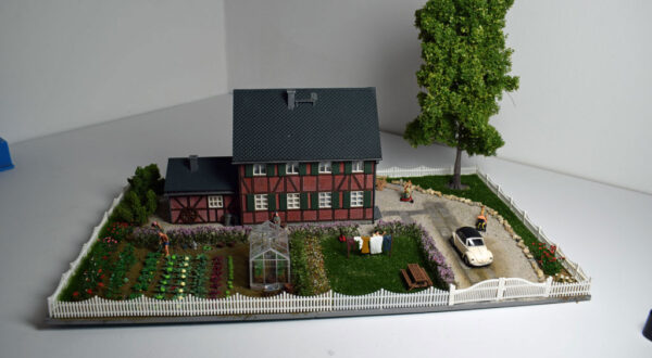 Ein schönes Thema für die Modellbahn! Mit Gartenlauben kann man einen Schrebergarten oder auch am Haus eine schöne Scene gestalten. Da am oft noch etwas Platz auf der Anlage hat kann das Umfeld mit Gemüse und Blumen gestaltet werden. Ja einige Hersteller bieten sogar Gartenzwerge an.