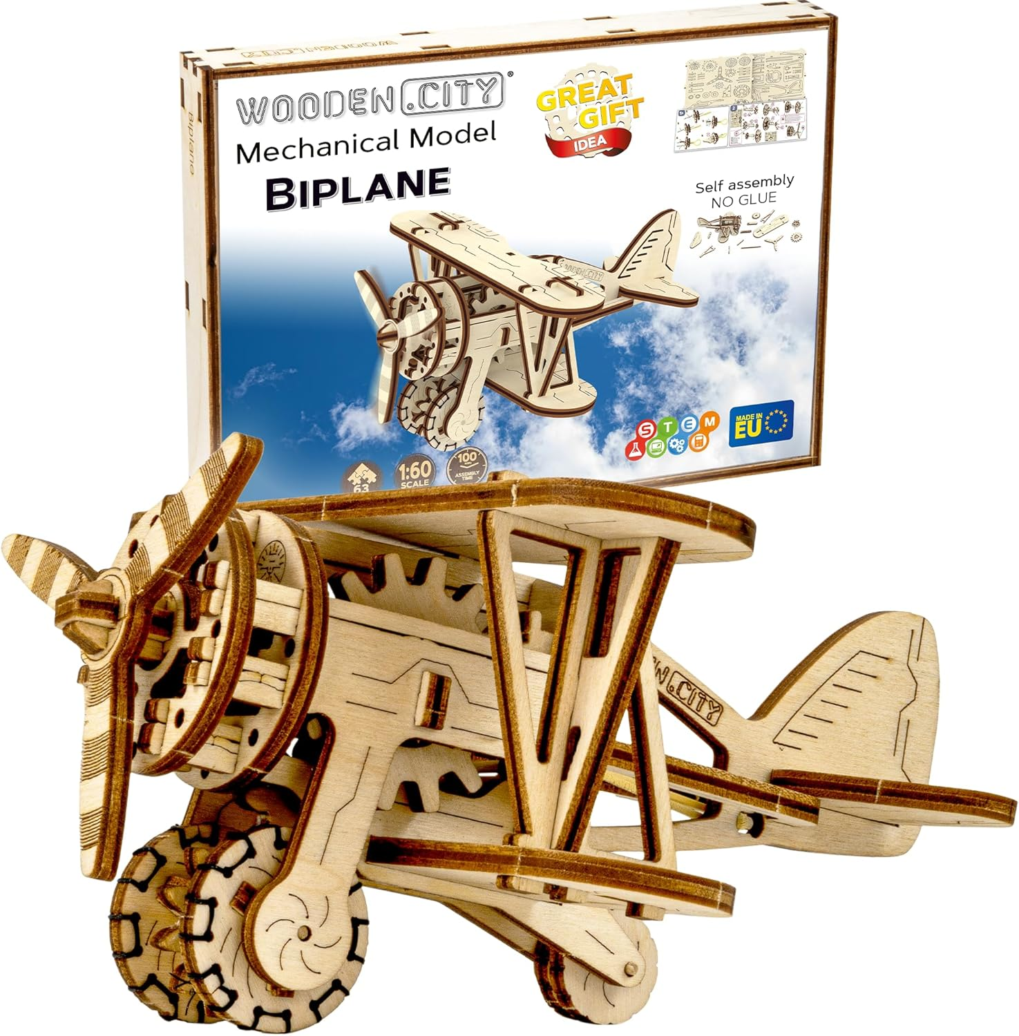 WOODEN.CITY 3D Puzzle, Doppeldecker Holz Flugzeug Spielzeug, Modellbau Bastelset für Erwachsene, Vintage Holzpuzzle, DIY Modellbausatz Anzeige: Bei Amazon ansehen