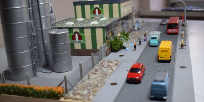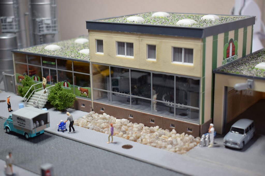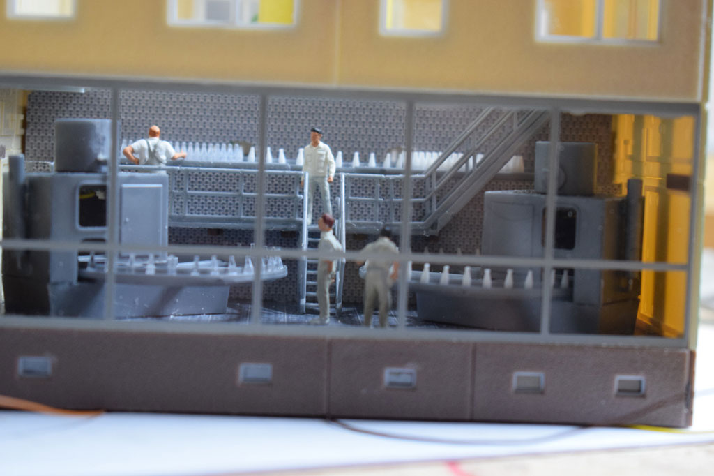 So eine Schau-Molkerei gibt es von Faller als Modell (130198 Molkerei und 130197 Anbau für Milchanlieferung).