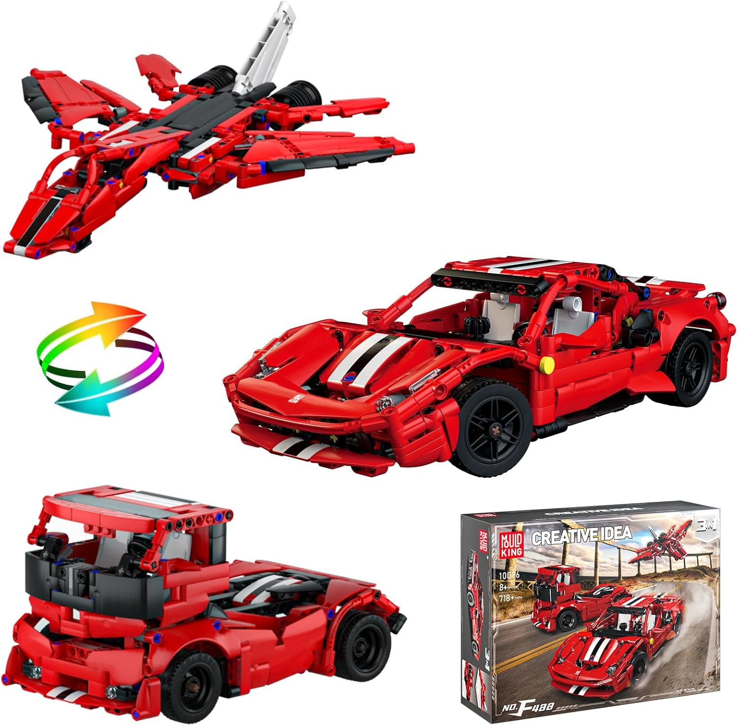 Mould King 10076 Speed Champion 3 in 1 Supersportwagen Bausteine Set Klemmbausteine LKW Flugzeug Spielzeug MOC Sammlerstücke Geschenke für Erwachsene Anzeige: Bei Amazon ansehen