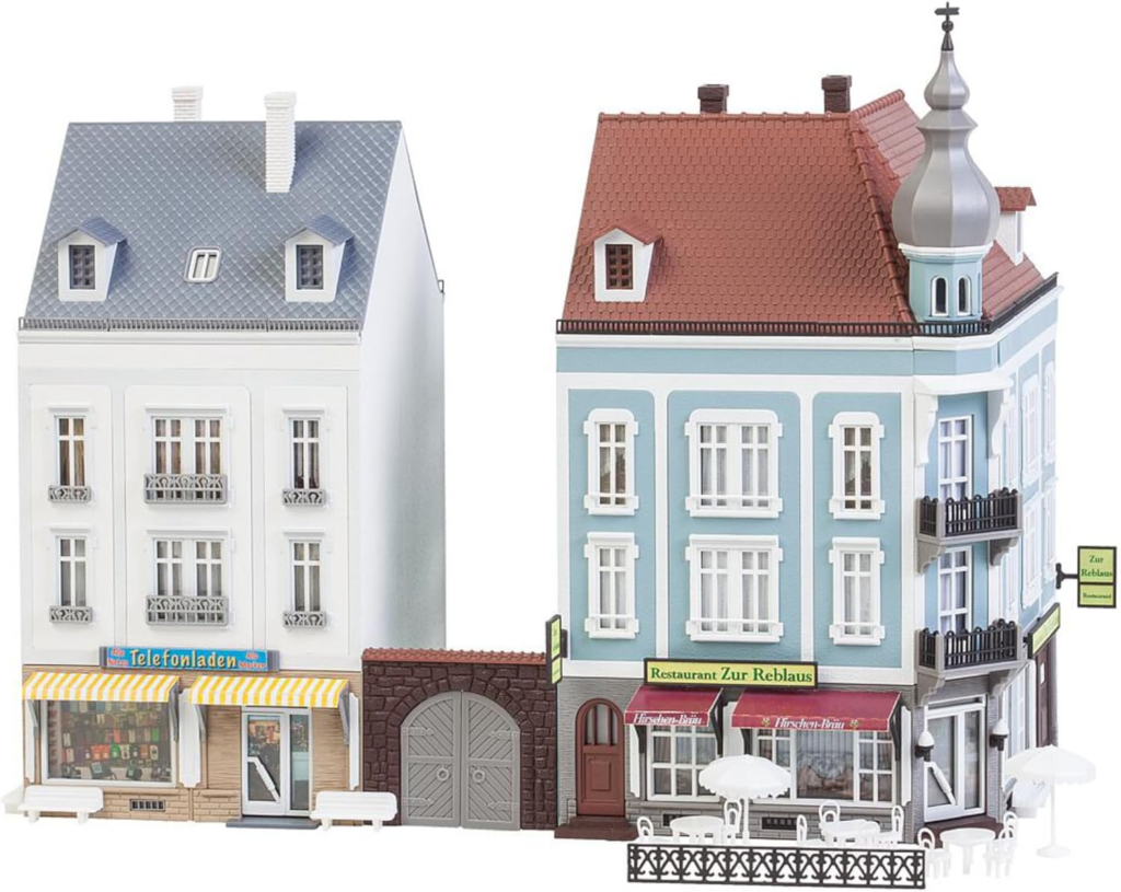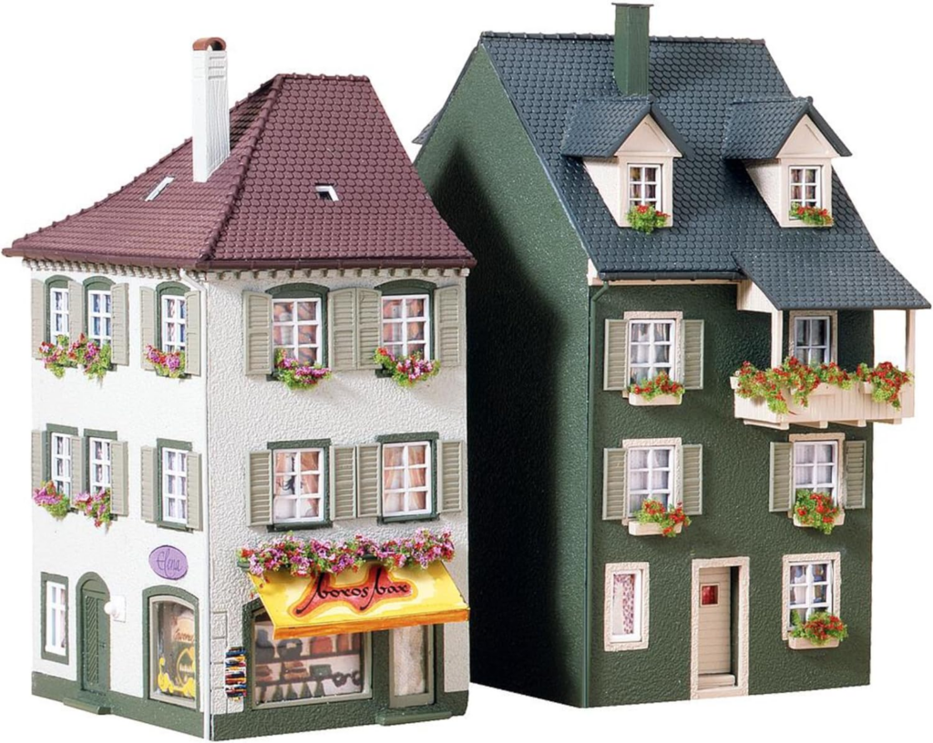 FALLER 130414 – 2 Stadthäuser Modellbausatz mit 207 Einzelteilen 75 x 112 x 145mm, 68 x 91 x 134mm I Modelleisenbahn Zubehör H0 Anzeige: Bei Amazon ansehen