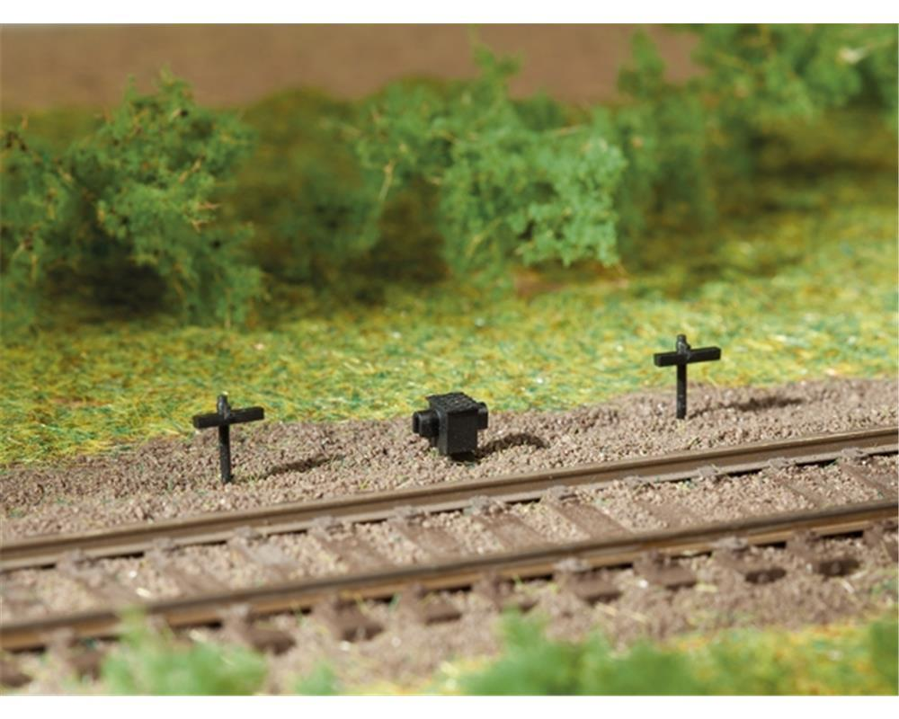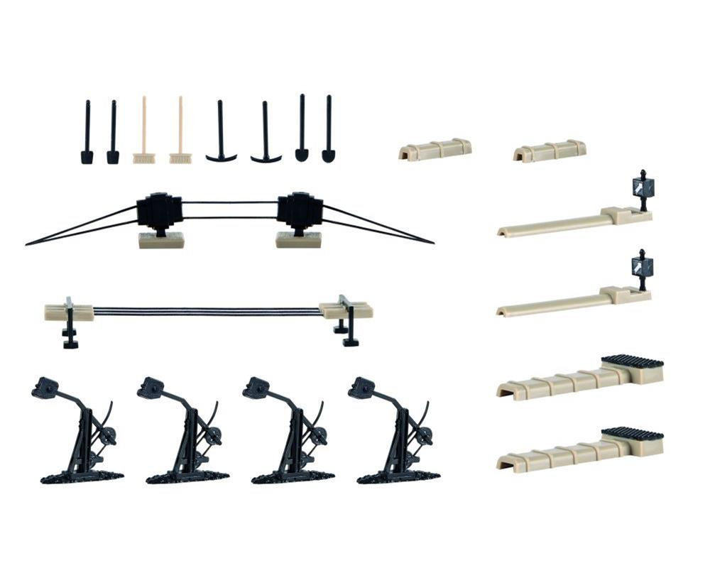 Hier findest du die Details, die deine Bahnstrecke erst richtig authentisch machen. Vom sicher gesicherten Bahnübergang bis hin zu den kleinen Elementen am Schienenrand – mit diesem Zubehör erweckst du deine Trasse zum Leben.