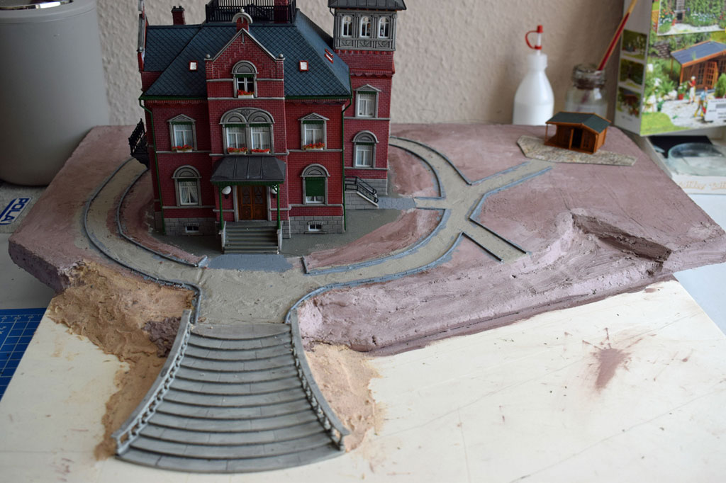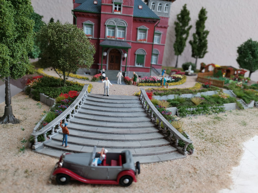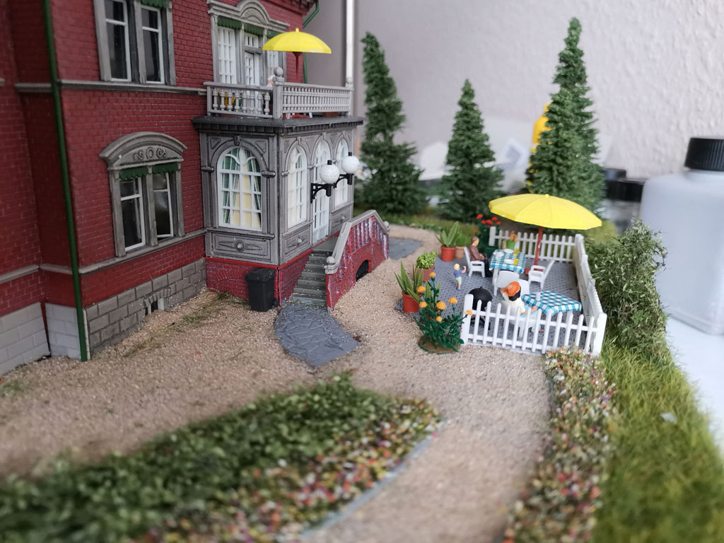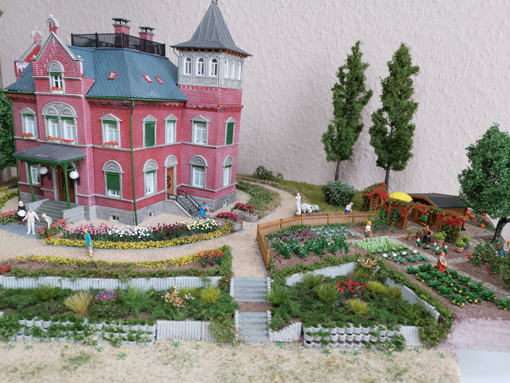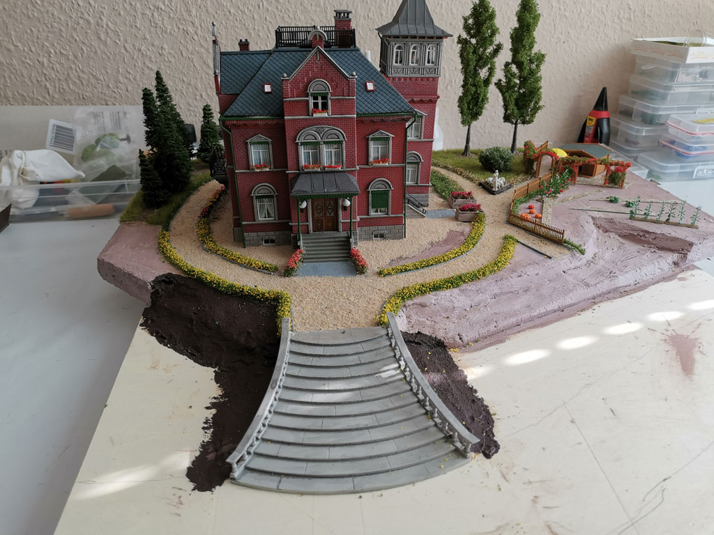Mit dieser Villa habe ich dann ein Diorama mit Parkanlage und Gemüsegarten gebaut. Dazu wurde der Eingangs- und Empfangsbereich aufwendig gestaltet.