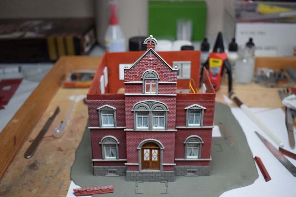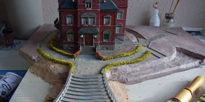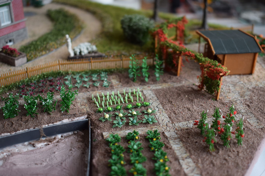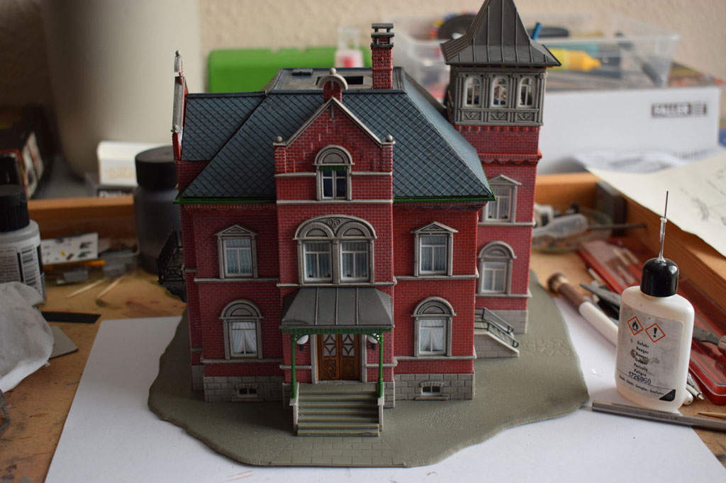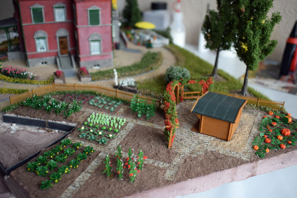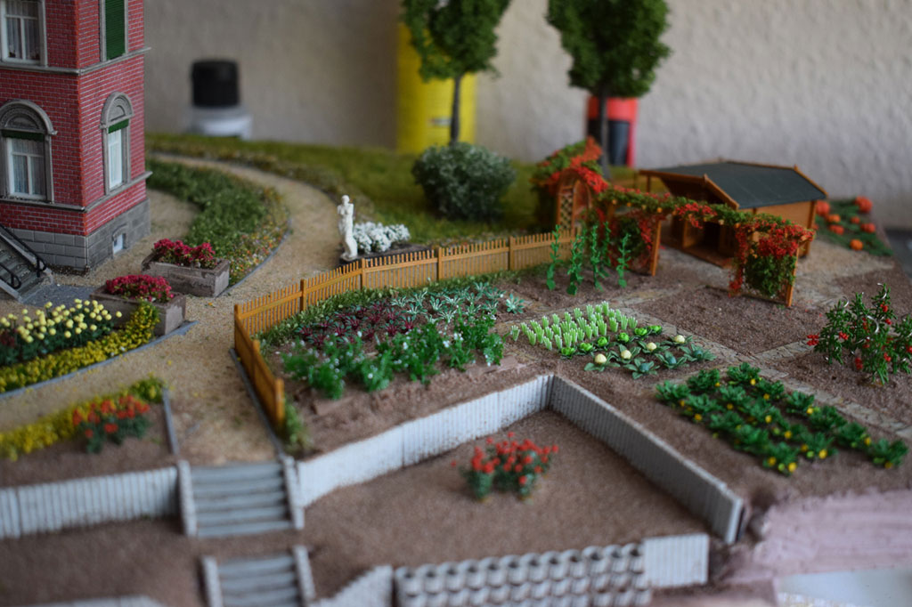 Mit dieser Villa habe ich dann ein Diorama mit Parkanlage und Gemüsegarten gebaut. Dazu wurde der Eingangs- und Empfangsbereich aufwendig gestaltet.